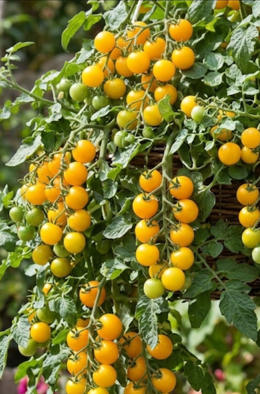 An easy to grow cherry tomato with a trailing habit making it ideal for hanging baskets, and large pots where they will cascade over the sides. Produces an early crop of sweet and juicy golden-yellow cherry tomatoes throughout summer. Plant in a greenhouse from late April onwards, outdoors in early June in a sheltered position in full sun.