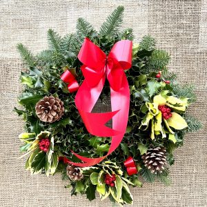 Hand made in Staffordshire by our nimble-fingered wreath makers, with all fresh holly and spruce harvested from our own farm.