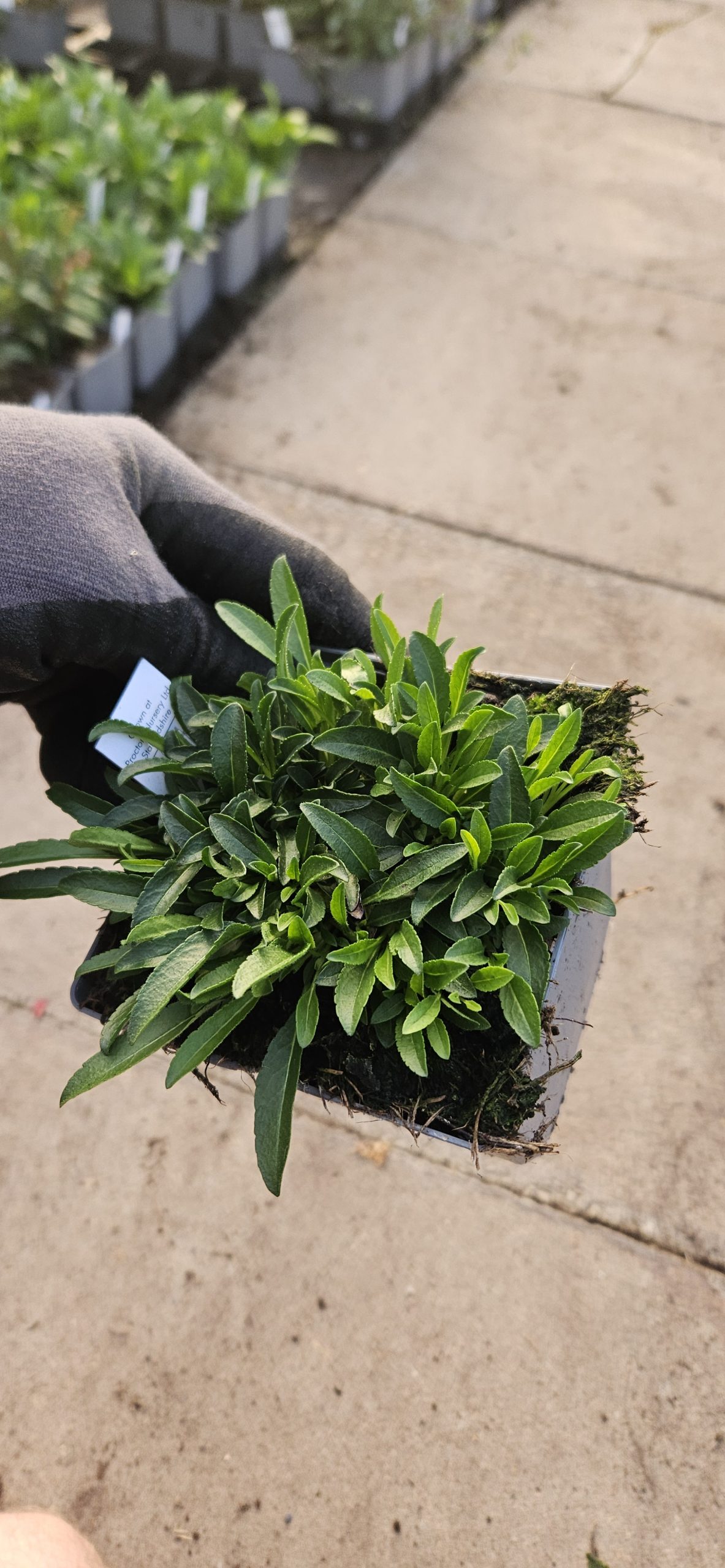 Speedwell. A mat forming perennial with upright stems of blue flowers from May to July. Attracts bees. Height 45cm. Spread 30cm. Full sun/partial shade. Hardy.