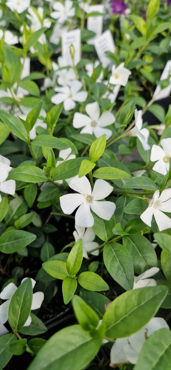 A mat forming evergreen perennial with trailing stems of dark green leaves. White flowers produced from mid-spring to autumn. Height 10cm to 20cm. Flowers from April to September. Full sun/partial shade. Hardy.