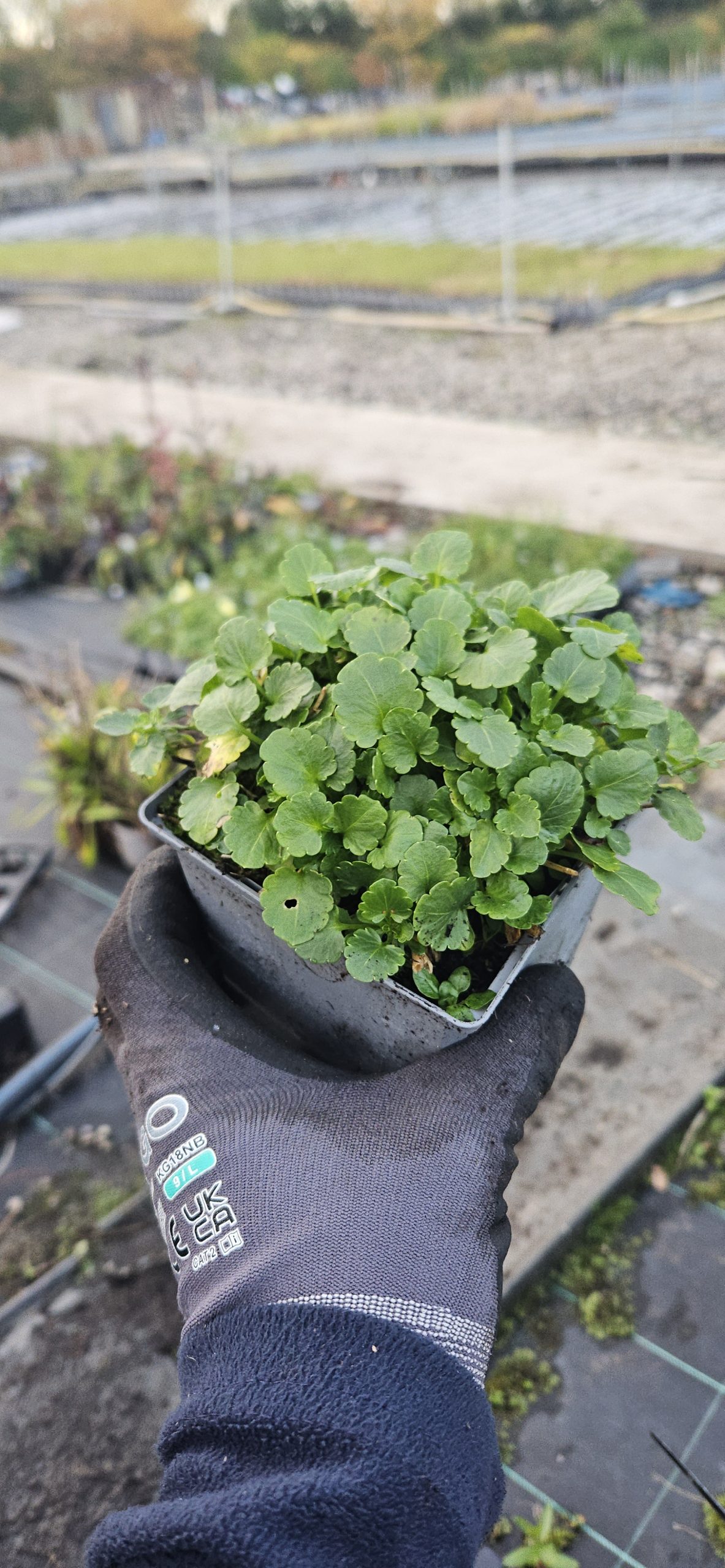 Perennial Viola. Beautiful sweet scented, large golden-yellow flowers, flushed with purple on the top petals. Flowers April to October. Height 10cm. Spread 15cm. Full sun/part shade. Fertile, moist, free draining soil. Hardy.